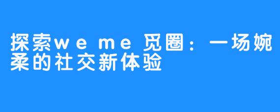 在当今快节奏的生活中,人与人之间的联系变得愈发重要。weme觅圈作为一种新兴的社交平台,以其独特的婉柔风格吸引了众多用户。它不仅提供了一个展示自我的空间,更创造了一个温暖、友好的社交环境。